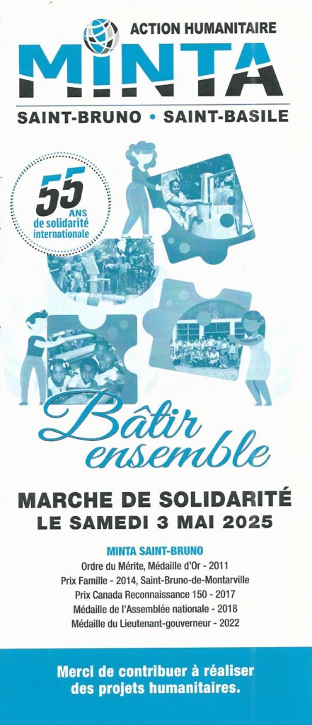 La Marche à travers les rues de Saint-Bruno-de-Montarville, d’une distance d’environ 5,5 kilomètres, se veut une expression de notre solidarité à l’égard des personnes pauvres vivant dans des pays en développement. Elle s’inscrit aussi dans notre campagne de sensibilisation et de financement annuel.