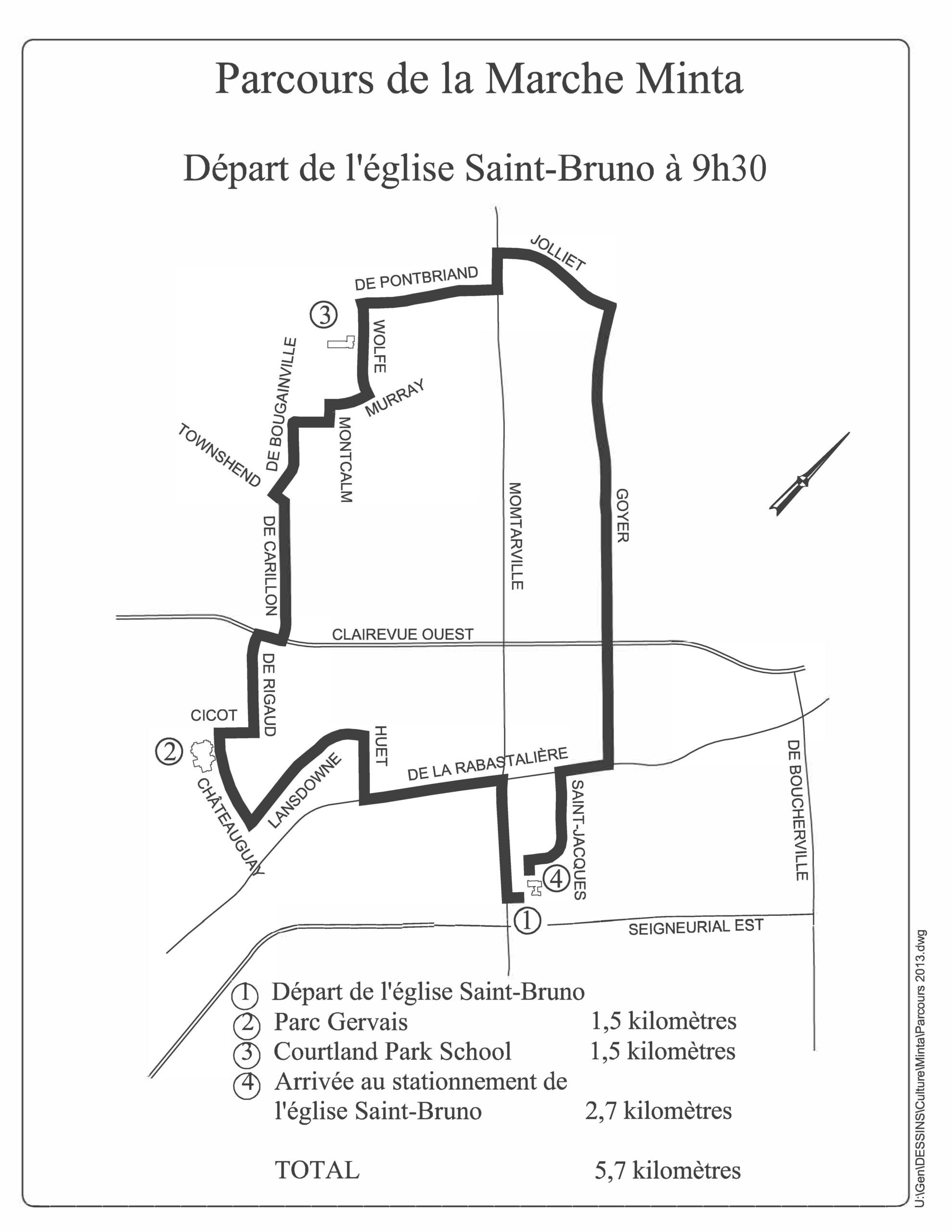Les participants sont priés de s’inscrire gratuitement sur place en arrivant, après 8h30. Le rassemblement des marcheurs se fait à partir de 9 heures devant l’église Saint-Bruno situé au 1668 rue Montarville. Du stationnement est disponible à la Caisse Desjardins, en face. De brèves allocutions sont prononcées par des personnalités de notre milieu et l’on procède à la remise des chèques aux répondants dont les projets ont été retenus. Le signal de départ est donné vers 9h30.